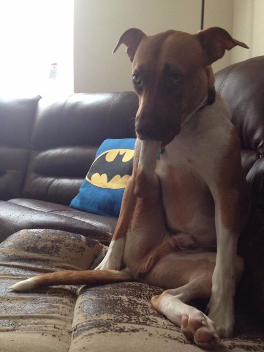 Some dogs suck on their...leg? Okay we don't think that's a thing.