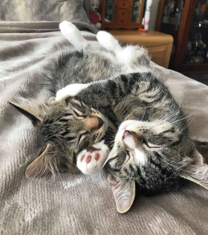 "Both kittens are extremely affectionate, adore cuddles and want nothing more than to spend time with 'their humans.' They prefer the company of each other over toys. They hype each other up and wrestle and then fall asleep with their paws wrapped around one another. They have a bond that I have never witnessed between another two animals," Grace explained.